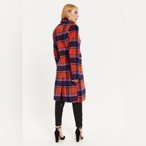 Nasty Gal Premium Plaid Double-Breasted Wool Look Coat Orange & Purple Size 16