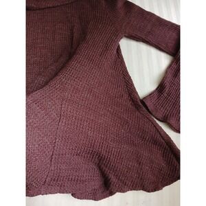 Anthropologie Top Medium Thermal Waffle Knit Burgundy Cowl Neck Layers Boho