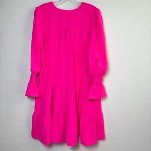 POMANDER PLACE Tuckernuck Electric Pink Crepe Kenzo Dress Ruffle Tiered M