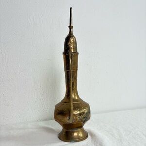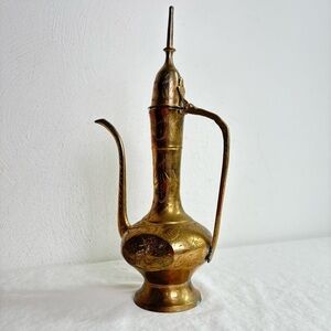 Vintage Solid Brass Teapot Genie Lamp Pitcher Made in India Ornate Etched Floral