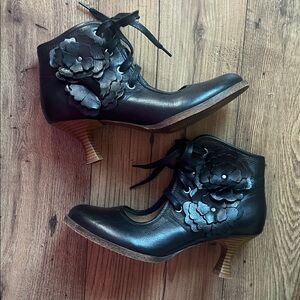 Unity in Diversity Whimsygoth Floral Appliqué Lace-up Heel Booties size 38