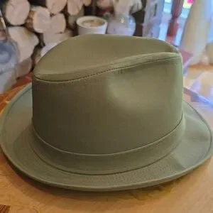 Classic olive khaki green fedora hat.