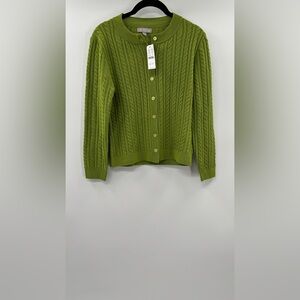 J.Crew Cable-knit crewneck cardigan in merino wool August Peridot