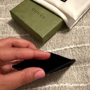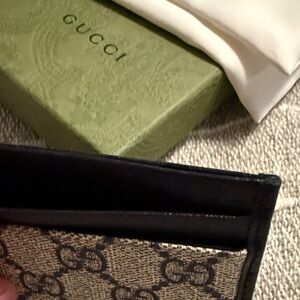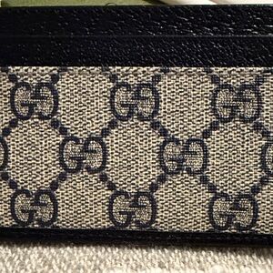 Stylish Gucci card holder with iconic GG pattern. Perfect for organizing cards with sophistication. Online receipt available.