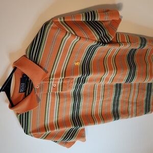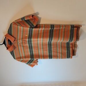 Ralph Lauren Polo Shirt 100% Cotton Men's Sz Small Orange/Blue Striped EUC NICE!