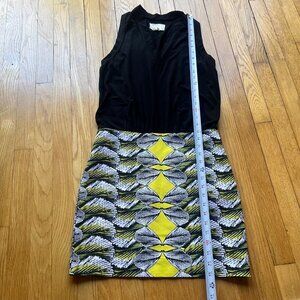 ARTELIER Nicole Miller Size 8 Black Yellow White Geometric Blouson Pencil Dress