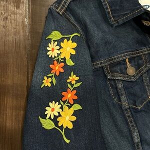 Upcycled Denim Jacket Old Navy Cropped Jean Jacket Small Retro Floral Embroider