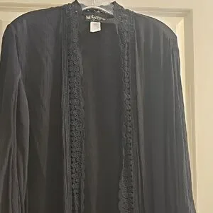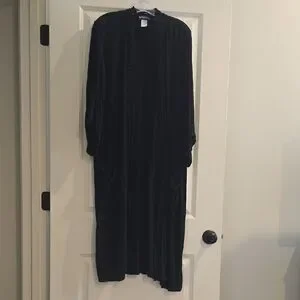 Elegant black cardigan. Open front design. Long sleeves. Perfect for layering.