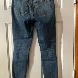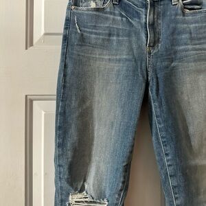 Very good condition. Only worn twice. Paige vintage premium denim ankle length distressed light medium wash skinny jean. Size 28. Stretch soft feeling jeans that naturally feel perfectly worn in.