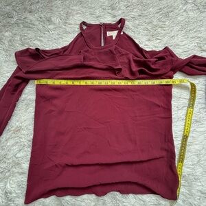Michael Kors Burgundy Women’s Long Sleeve Cold-Shoulder Ruffle Blouse Size M