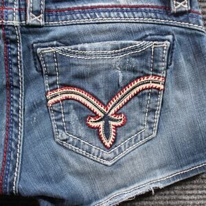 Rock Revival Shorts Women's 26 Blue Becky Cutoff Distressed Embroidered