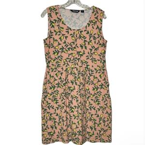 Lands End Lemon Print Pink Scoop Neck Sleeveless Dress M