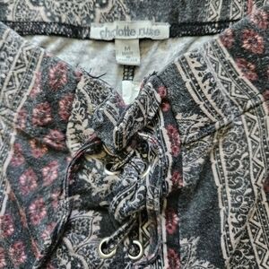 Charlotte Russe Boho Wide-Leg Pants - Pink/Purple and Gray