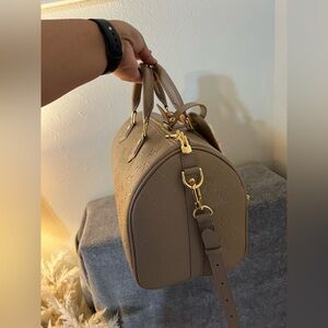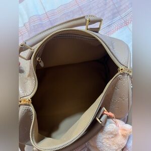 D U P E ! I dont see date code inside! Comes with lock and key, bag tag, a dust bag and a long strap! Color is taupe! Super classy bag and it looks like the real deal! The stitching and hardware engravings are fire!! This bag will give you sophisticated classy look! Labubu is not included