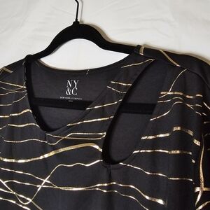 New York & Company Womens Black & Gold Lines Stretch Cutout Neckline Style XXL