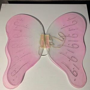 Enchanting pink fairy wings with glitter details. Perfect for costumes or dress-up.