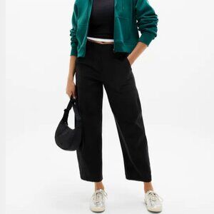 Athleta Skyline High Rise Barrel Leg Pant Black 2P casual twill pants office work