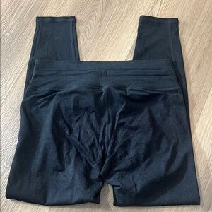 Made from the same material as the vuori joggers, but in a legging style. There is some pilling on the seam at the inside of the thigh (pictured) that could probably be trimmed off. Otherwise they are in good condition. Color is Black Heather size small.