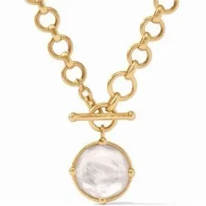 Julie Vos Honeybee Demi Necklace Elegant Gold Chain Necklace with White Pendant