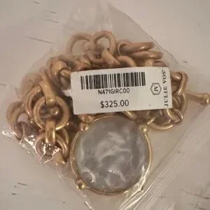 This demi-sized version of a favorite necklace has two ways to wear: Show the rose cut stone accented with golden beads or flip it to display a detailed bas relief bee.