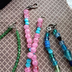 2 beaded Necklaces,1 anklet, Glass Beads, Sterling Charms.