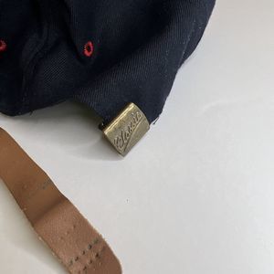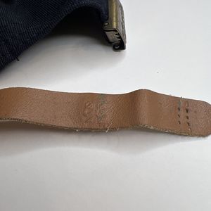 This hat is in good condition. Has some green stain on leather adjustable strap from the clasp. See photos for details and condition before purchasing please.