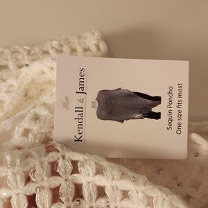 Elegant white knit poncho featuring fringe detailing. Perfect for layering. Brand new with tags.