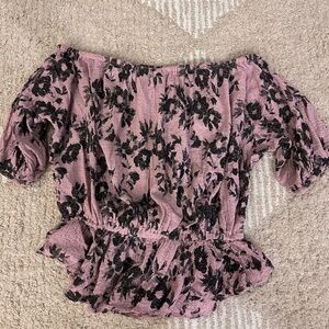 Free people brand purple floral top. Off the shoulder with removable thin straps. Cinched waist and arms. Size medium.