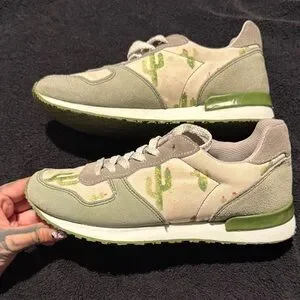Inkkas Cactus 🌵 Print Sneakers with Green Accents women’s Sz.7