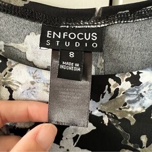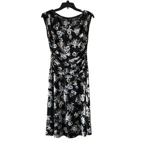 Vintage Floral Ruched Midi Dress Black Blue White Cap Sleeve 90s Cottagecore SM