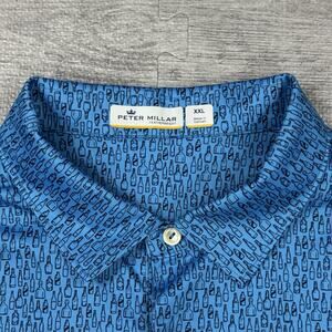 Peter Millar Featherweight Sz XXL Polo Shirt Reflection Bay Blue Beers Golf AOP