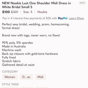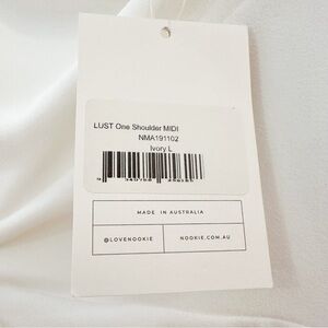 New with tags. Nookie Lust One Shoulder Midi Dress in White Bridal. Size Large.