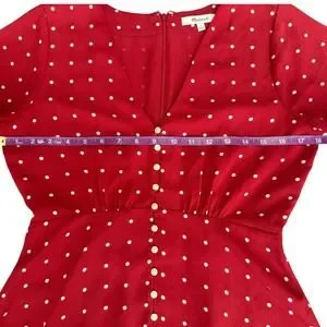 Madewell Button-Front Swing Dress Red White Polka Dot Short Sleeve Mini Size 2