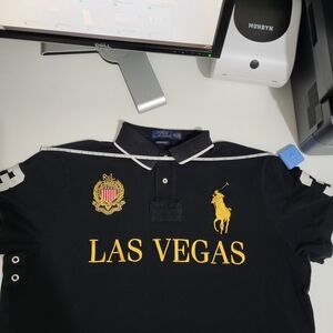 Authentic Polo Ralph Lauren men’s polo shirt featuring the Las Vegas embroidered crest and iconic gold pony logo.
