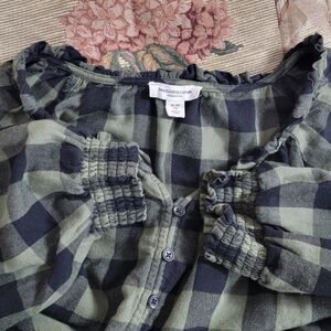 BeachLunchLounge Dress Womens XL Green Black Buffalo Check Flannel Long Sleeve.