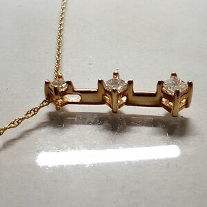 This Stylish Past-Present-Future Style Slide Features a Graduated 3-Stone Design of Princess-Cut Diamonds (0.25ctw) set in 14Kt Yellow Gold.