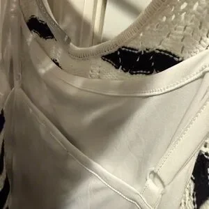 Stylish black and white chevron knit dress perfect for any occasion. Comfortable and chic, this dress is a must-have for your wardrobe. Interior slip. Size 26/28