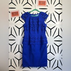 Antonio Melani Cobalt Blue Cocktail Dress w/ Laser Cutouts & Cap Sleeves – Sz 10