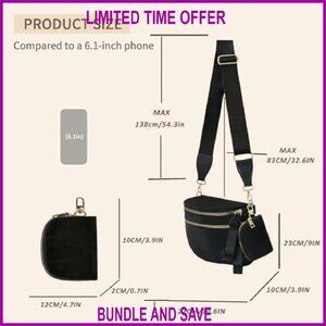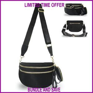 Checkered Crossbody Bag Nylon Fanny Pack Adjustable Strap 10.3x9x3.9in