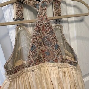 Free People Pretty Prarie Skirtall dress. Full skirt with flowers detail and lining. Embroidered floral bib with adjustable straps. Worn twice, in excellent condition.