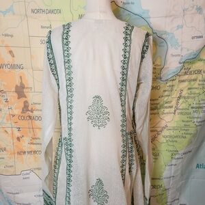 Lovelies dress, it has very long sleeves. I believe it would fit a size medium.