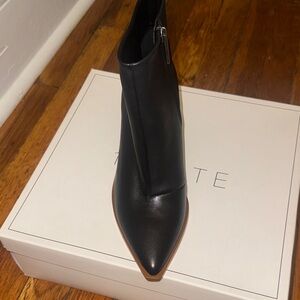 1. State Women's Black Ankle Booties with Tan Heel