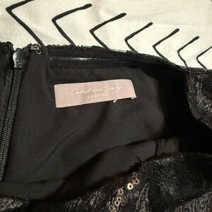 This stunning black lace evening gown is perfect for any formal occasion. Its elegant design and flowing silhouette make it a must-have for your wardrobe. Size in gown is a 36 which should be close to a 6