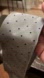 Stylish silver tie with navy polka dots. Ideal for formal events.