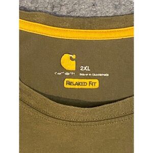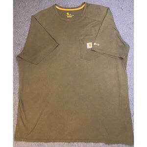 THANK YOU FOR LOOKING AT THIS LISTING... UP FOR SALE IS A PRE-OWNED AUTHENTIC CARHARTT SHORT SLEEVE relaxed fit FORCE SHIRT.. SHIRT SIZE IS XX-LARGE AND IS AVOCADO GREEN..SHIRT IS 35% POLYESTER AND 65% COTTON. ... PLEASE SEE PICTURES... THANK YOU AND GOOD LUCK...