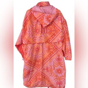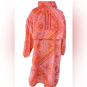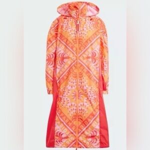 FARM RIO ADIDAS LONG JACKET WINBREAKER TROPICAL COAT PINK RED TOMATO SOCCER MED