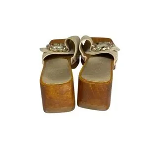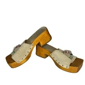 Vicenza Y2K 90s Fashion Wooden Mule Leather Embellished Buckle Heels Size 38 7