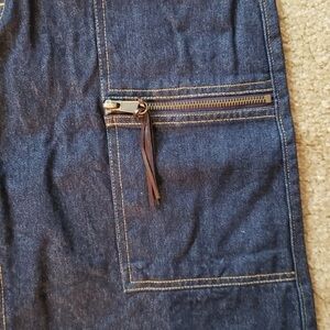 dark wash denim skirt leather trim cargo coastal cowgirl