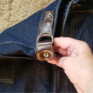 ROUTE 66 dark wash denim skirt leather trim adjustable waist summer fall winter