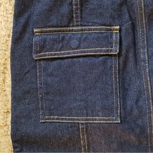 ROUTE 66 dark wash denim skirt leather trim adjustable waist western mod coastal cowgirl cargo